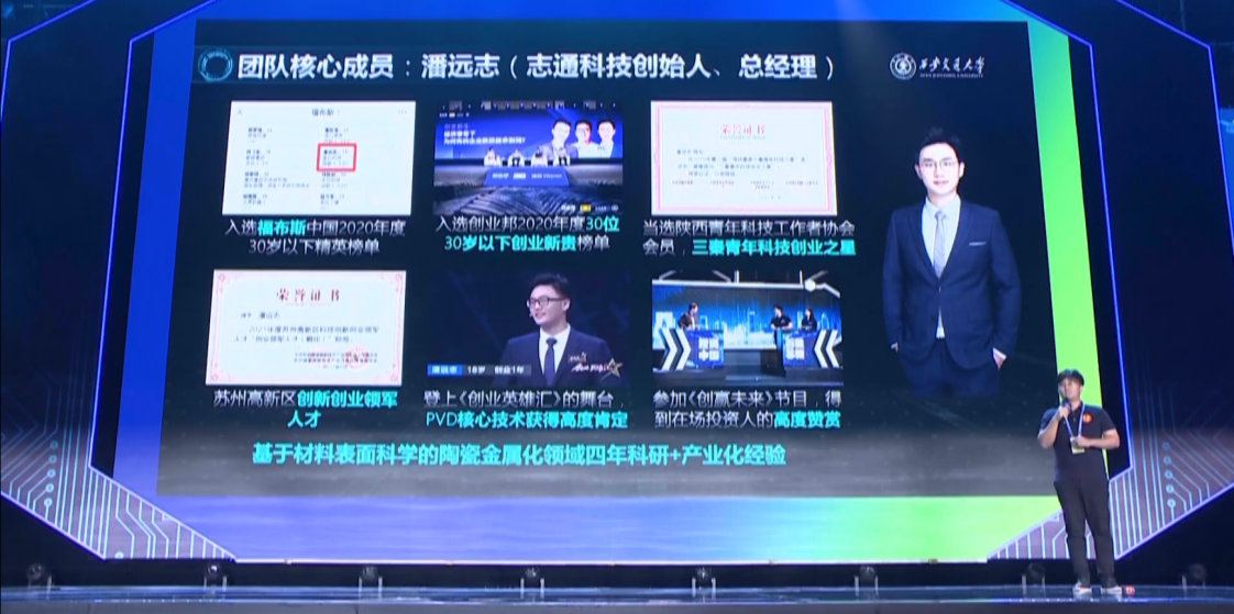 西安交大共推荐8个主赛道项目团队、3个“青年红色筑梦之旅”项目登上全国总决赛的舞台。另外,由学校推荐的3个国际项目也入选总决赛,以线上的形式完成答辩评审。最终主赛道项目“定波助缆——陶瓷滤波器稳定高效滤波解决方案“智雾科技——全球领先的喷雾技术解决方案供应商”“抗怀菌外——医用复合抗菌薄膜领跑者”“NUSPACE星核动力——中国航天器能源动力最佳解决方案的供应商”“烯格赛斯——石墨烯包覆粉体技术引领者”“核芯华创-激光剥离垂直结构LED芯片技术开创者”“YouiBot——行业领先的复合移动机器人及解决方案提供商”以及“青年红色筑梦之旅”赛道项目“零碳科技——碳中和技术引领者”获得全国金奖,“微方科技——CMP修整器制造专家”“水泽动力-无人设备水域治理先行者”获全国银奖,由西安交大推荐来自墨尔本大学的项目“High power heat sink material leader”获高教主赛道(国际项目)金奖。