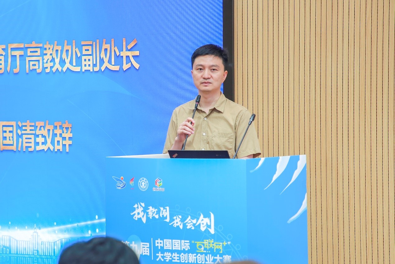 洪军副校长对参会嘉宾表示欢迎。他表示,创新创业教育对大学生个体发展及职业发展都有着重要意义,并对学生踏入社会、适应社会、融入社会奠定良好基础。学校高度重视学生的创新创业教育工作,先后成立创新创业学院、未来技术学院、现代产业学院等大力推动产教融合、协同育人,同时通过国家技术转移中心、国家大学科技园等机构进行项目成果孵化,共同助力创新创业教育工作高效有序推进。历届“互联网+”大赛都取得了非常优异的成绩,未来学校将继续以“互联网+”大赛为抓手,将创新创业教育融入到学校人才培养教育工作中,积极培育大学生创新创业意识,夯实创新创业教育成果,深化创新创业教育改革,努力营造全校创新创业的氛围,切实提高学校毕业生高质量创业就业的能力。