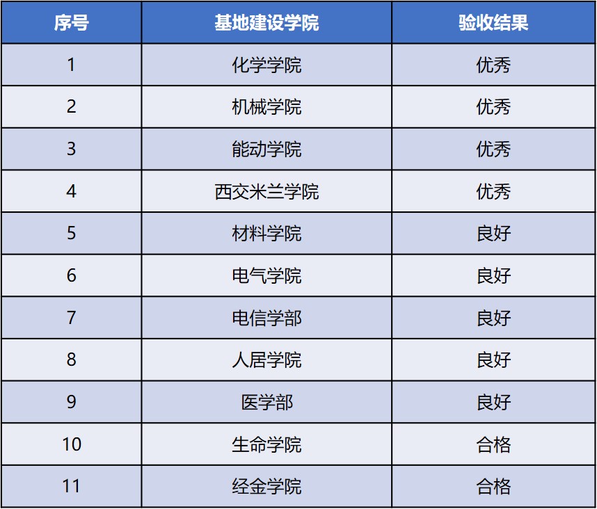 根据《关于开展2025年西安交通大学创新创业教育实践基地建设总结验收工作的通知》(西交实践〔2025〕31号)要求,学校完成了2025年创新创业教育实践基地验收工作。经基地负责人汇报、专家评审,共有11个基地通过验收,现将结果予以公示。